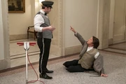 Lester finds two young women waiting on some stairs. He asks if they're there to visit someone. Just then, Charles walks in and they jump up, saying they're Brazzos' biggest fans. They want a picture but he doesn't take pictures without his Brazzos badge. Then he does some sleight of hand to put his badge on his coat. He takes a picture and then gives his badge to one of the women. Lester says Charles handled that like a pro. He says he's also an actor, just getting started. Charles wishes him luck. As he walks away, George approaches and tells him a homeless woman is making a racket in the courtyard. He needs Lester to go tell her to move along.