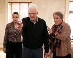 Marshall looks through the peephole and sees Vince and Rudy, who say they want to borrow some sugar. He says Mabel's not there, but they continue listing off things they could use for their Sugar Chicken recipe. While he's distracted, Charles and Oliver tap on the glass, signaling to Mabel, who opens the window. Charles climbs in over Oliver's objection, saying that Marshall killed Sazz. He grabs Eva Longoria's multitool off the shelf and points it at Marshall, telling him to drop the gun as Vince and Rudy finally leave, saying they're going to get a crowbar. Charles shoots nails at the door, then kicks the gun out of Marshall's hand. Oliver picks it up and points it at Marshall. They force Marshall to sit and Charles asks Marshall why he killed Sazz. Mabel says it's because she wrote the "Only Murders" movie. Marshall says he tried to be a writer and did everything you're supposed to do. He tried to monetize his childhood by turning it into a screenplay. He tells them how his dad forced him to hunt. He was a perfect marksman, but all he wanted to do was write. Then he moved to Hollywood and his dad gave him six months. He asks him if they'd watch it. They give non-committal answers. Marshall wanted to prove his dad wrong, but nobody would touch his script. He was about to call it quits when he met Sazz, who was the first person to be nice to him. After the Ron Howard incident, Sazz said his stunting career was over, but he could get back to his writing. She even offered to read a draft of his screenplay.