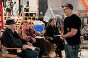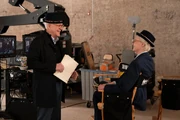 Charles, as Brazzos, stands from his wheelchair, saying he can still send the investigation in a new direction. The director calls for Charles to freeze and has Sazz tap in for him. Sazz takes her position and jumps off the roof, landing on an airbag below. She puts up her thumb to show she's okay and the director calls cut. Sazz climbs off the airbag and grabs an ice pack, which she presses to her neck. Sazz sits on a box turned sideways and watches one of the writers from Brazzos eat a plate of food someone else brought her. Charles comes up to Sazz, asking if she's okay. She tells him she's all good. He says he's getting worse with heights and she tells him she has him, so he doesn't have to worry about a thing.