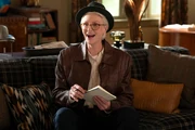 Mabel asks Charles if Oliver and Loretta went up already. Charles says yes, because Loretta has to leave first thing tomorrow. They're taking care of their honeymoon business while they can. Mabel would rather picture them playing show tunes together. Charles says he and his date had a great time. He pulls Sazz's ashes out of his bag. He brought them because Sazz loved weddings, but he's ready to say goodbye and is planning to spread them on the land that was supposed to be her trampoline park. He thinks she'd like to be there. The elevator opens and a woman steps off. She says she was upstairs looking for them, because there was no doorman on duty, so she took a shot. She wants to hire them to find her husband. Mabel says they're not a detective firm. She says her husband is Nicky Caccimelio. Or was if you believe the news. She pays very well, but Charles says they only investigate murders in the building. She says what happened to Nicky has everything to do with the building. They wish her good luck. She's disappointed. She thought they could do what the cops couldn't. She introduces herself as Sofia Caccimelio, handing them a card and telling them to call if they change their minds. They get on the elevator as she leaves. Charles says she's quite a dame. When Mabel gives him a look, he says he means it in the same way that Judy Dench is a dame.
