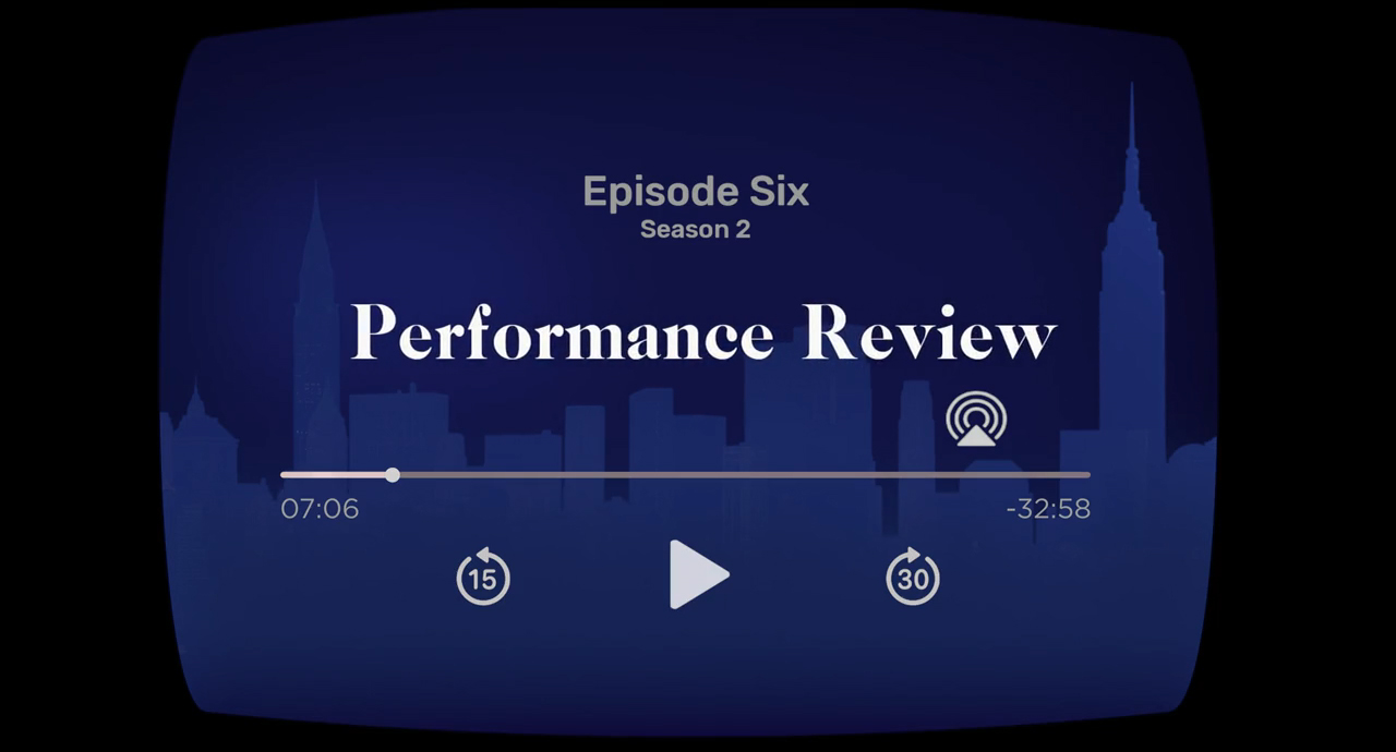 Performance Review is the sixth episode of the second season of Only Murders in the Building. It was released on July 26, 2022. The episode was written by Ben Smith and Joshua Allen Griffith, and directed by Cherien Dabis.